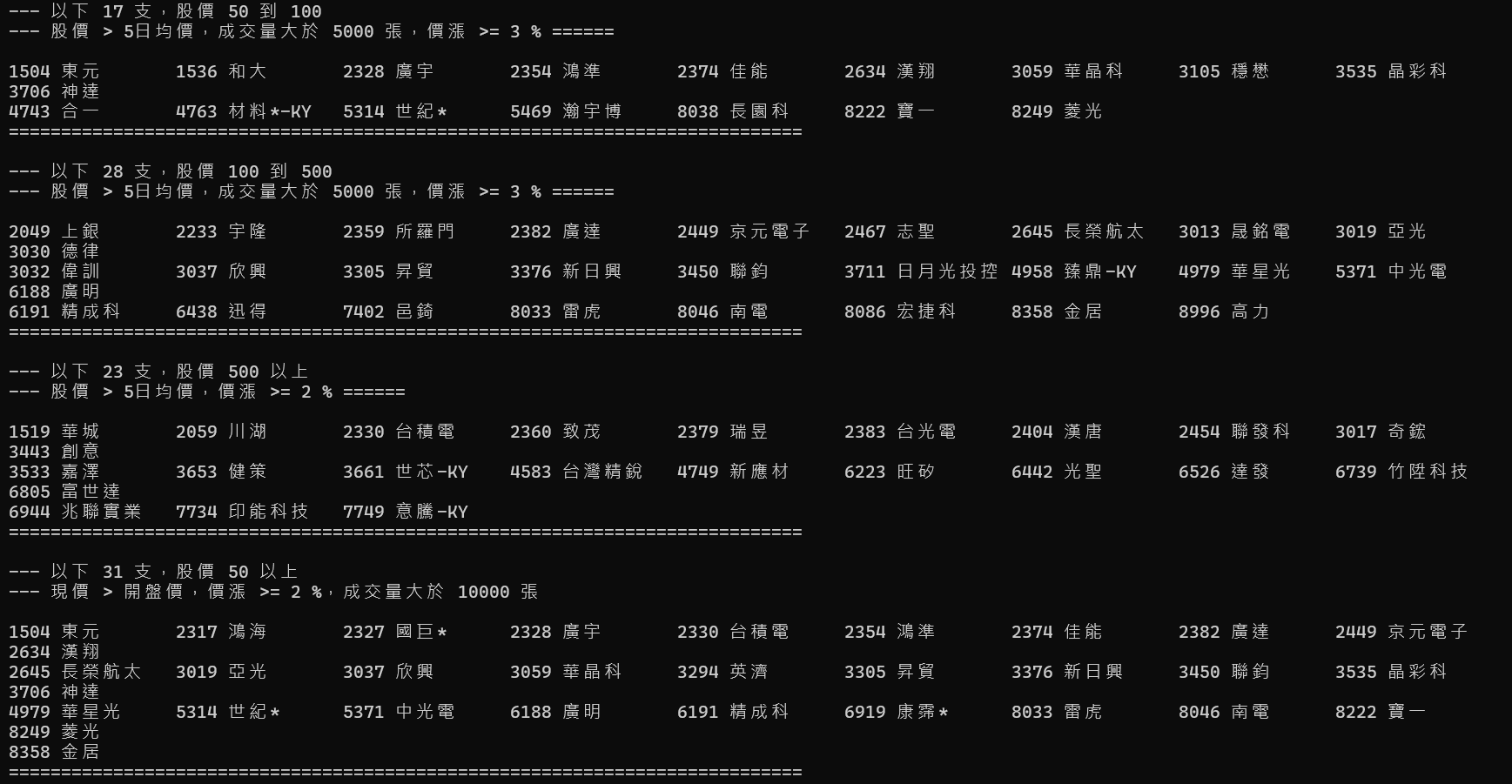 台股盤後篩選資訊